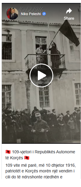 Në një postim në rrjetet sociale, Peleshi theksoi se më 10 dhjetor 1916, patriotët korçarë morën një vendim që ndryshoi rrjedhën e historisë së vendit, duke udhëhequr me guxim dhe mençuri përpjekjet për të ndalur pushtuesit dhe për të mbrojtur integritetin territorial të Shqipërisë në një kohë kur vendi rrezikohej nga synimet aneksuese të fqinjëve.