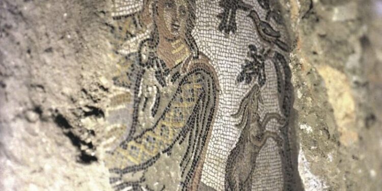 Mozaiku është zbuluar në bodrumin e një banese njëkatëshe, në lagjen nr. 9. Rrotull ka banesa të tjera, kryesisht njëkatëshe, ku duhet hamendësuar se vazhdon ndërtesa antike. Megjithatë, deri më sot nuk ka pasur njoftime për gjetje të tjera, që mund të konsiderohet normale për Durrësin.