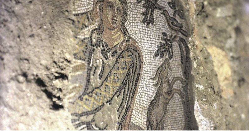 Pjesa tjetër e mozaikut paraqet imazhe figurative, dëshmi se i takonte një ambjenti të ndryshëm nga mozaiku i mësipërm. Skena e zbuluar ka përmasa 90×57 cm. Kompozimi i mozaikut kufizohet nga një brez anësor krijuar me pesë rreshta, të zbukuruar me motive të ndryshme gjeometrike. Pjesa qendrore e mozaikut paraqet një kompozim me disa figura. Imazhi kryesor është një figurë njerëzore paraqitur si një djalosh i ri, tek qëndron i ulur. Qëndrimi i tij jepet ëndërrimtar, me trupin e kthyer djathtas në tre-të-katërtat, ndërsa kokën e rrotulluar në krah të kundërt, të mbështetur në dorën e djathtë, me pamje të ngritur lart dhe të përhumbur në mendime. Ka fytyrë të rrumbullakët, flokë të gjatë që i varen nga pas, dhe mban një kapele të tipit frigjian. Pas tij zhvillohet një skenë bukolike, e krijuar me disa figura. Pranë një peme qëndrojnë dy viça, njëri i shtrirë, kurse tjetri nga pas në ecje. Një cjap me dy gjymtyrët e para të mbështetura tek trungu i pemës përpiqet të ushqehet me gjethe. Në degët e pemës qëndron një zog.