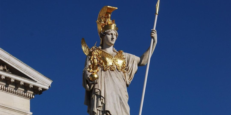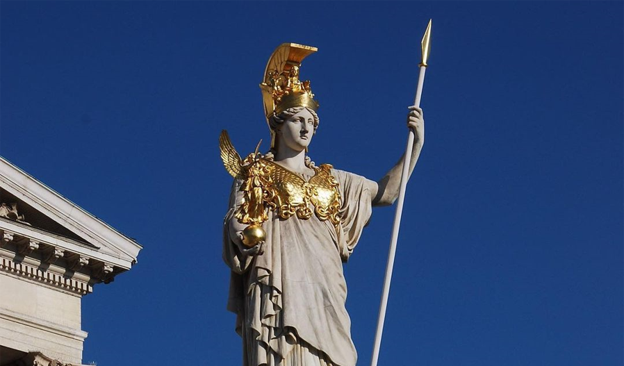 Foto: Statuja e perëndeshës së urtësisë Athena nga Karl Kundmann në Vjenë, Austri.