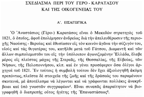 Materialet e reja hedhin dritë edhe mbi përbërjen e trupave të Karatashos. Në Naoussa dhe zonat përreth, prania e elementit arvanitas ishte tejet e fuqishme. Tekstet historike që përshkruajnë ngjarjet e vitit 1821 dhe kryengritjen e Olimpit, e cilësojnë “Gero-Karatasos” si një udhëheqës që mobilizoi jo vetëm grekët, por edhe “Arvanitët e rajonit”.