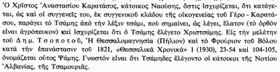 Etimologjia e emrit “Tsamis” dhe dëshmitë familjare