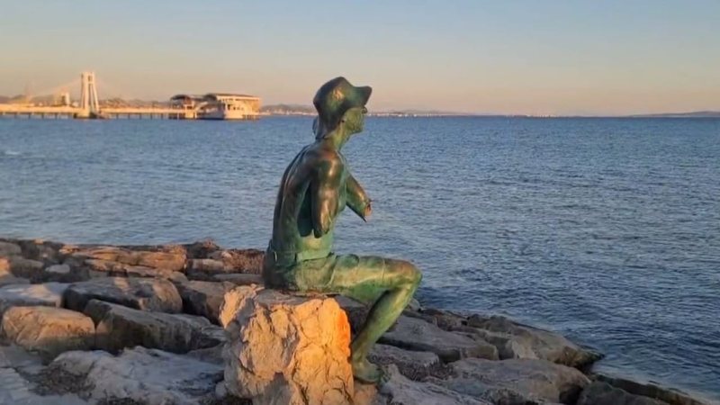 E realizuar nga skuptori Dylber Neziri, kjo skulpturë urbane u vendos buzë detit në vitin 2016 duke u shndërruar shpejt në një simbol për qytetin. Por ajo është dhe një nga skulpturat më të dëmtuara në qytet, së bashku me skulpturën e këngëtares Tina Turner.