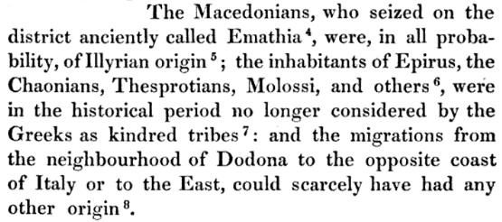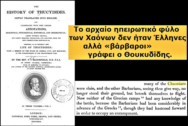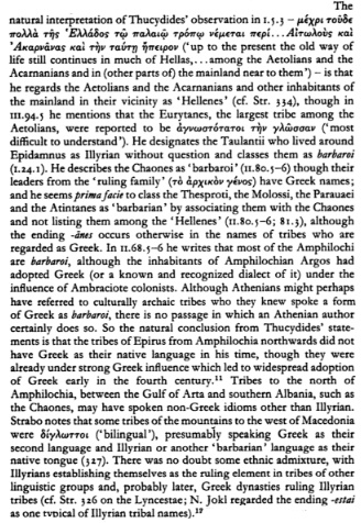 Sipas dokumenteve, teksti thotë shprehimisht: “…the barbarian of a thousand Chaonians… with the Chaonians came also some Thesprotians… some Molossians and Atintanians.” Kjo ndarje nuk ishte thjesht gjeografike, por etno-kulturore. Grekët e asaj kohe nuk i konsideronin këto fise si “të tyret”.