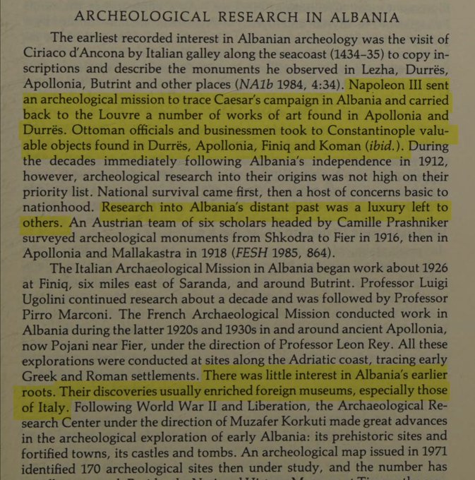 - (Manual/Enciklopedi). “Archeological Research in Albania”. Fragmenti studimor që trajton historikun e misioneve të huaja dhe fillimet e arkeologjisë shqiptare (referencat e brendshme: NA1b 1984 dhe FESH 1985).