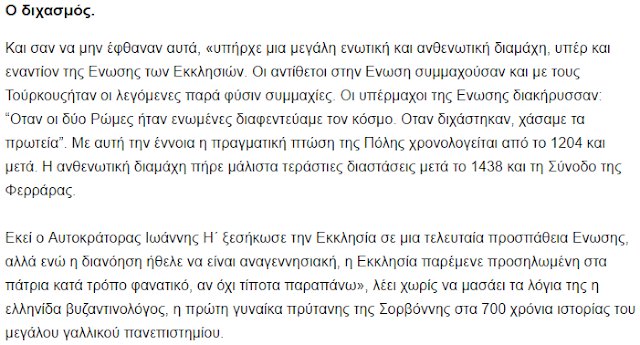 Për Ahrweiler, rënia nuk ishte një aksident teknik, por një proces i gjatë dekompozimi që nisi që në vitin 1204 me Kryqëzatën e Katërt (Dokumenti 3). Ajo analizon me mprehtësi “Dikhazmon” (përçarjen) midis unionistëve dhe kundërshtarëve të bashkimit të kishave, duke vënë në dukje se ndërsa inteligjenca kërkonte një frymë Rilindjeje, Kisha mbetej e izoluar në fanatizëm.