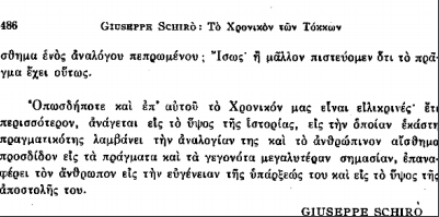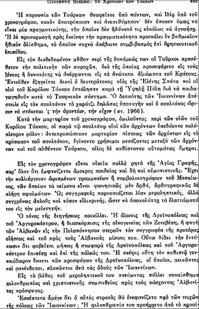 Një nga pikat më interesante që Skiroi nënvizon është anshmëria e theksuar e kronikanit. Autori shfaq një simpati të palëkundur për elementin grek (të cilët i quan “Romei”) dhe një antipati po aq të fortë ndaj zotëve shqiptarë që dominonin rajonin para ardhjes së Tokos.