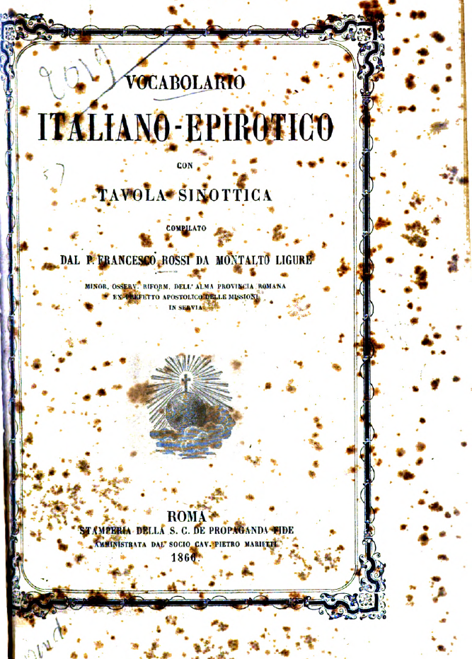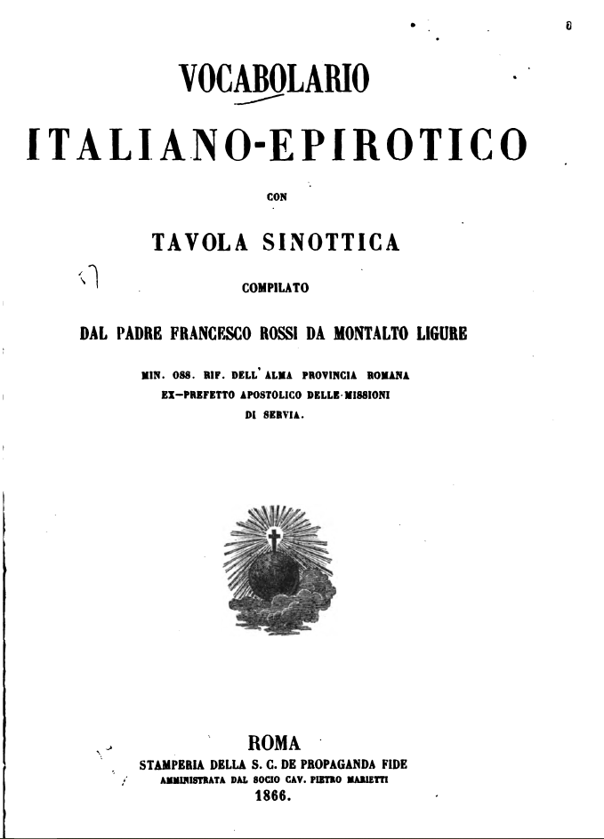 Në mesin e shekullit XIX, në Romë, frati minorit Francesco Rossi nga Montalto Ligure botoi një vepër të rrallë: Vocabolario Italiano–Epirotico con Tavola Sinottica (1866). Që në titull, ky tekst mbart një kuptim që sot, përtej vlerës gjuhësore, ngre një tezë historike të madhe: termi “Epirotico” përkufizon gjuhën shqipe. Rossi, si misionar apostolik që kishte jetuar mes popullsive shqiptare të asaj që quhej atëherë “Turchia Europea”, shënonte qartë se idioma e asaj treve, e cila shtrihej nga Adriatiku në Jon, ishte ajo e popullit të quajtur “Shcipetari”, pra shqiptarëve.