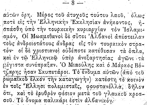 Në dokumentet e tjera të shfaqura, si ato të Friedrich Thiersch (1879), hidhet dritë mbi identitetin e heronjve të Revolucionit Grek. Dokumenti thotë qartë: