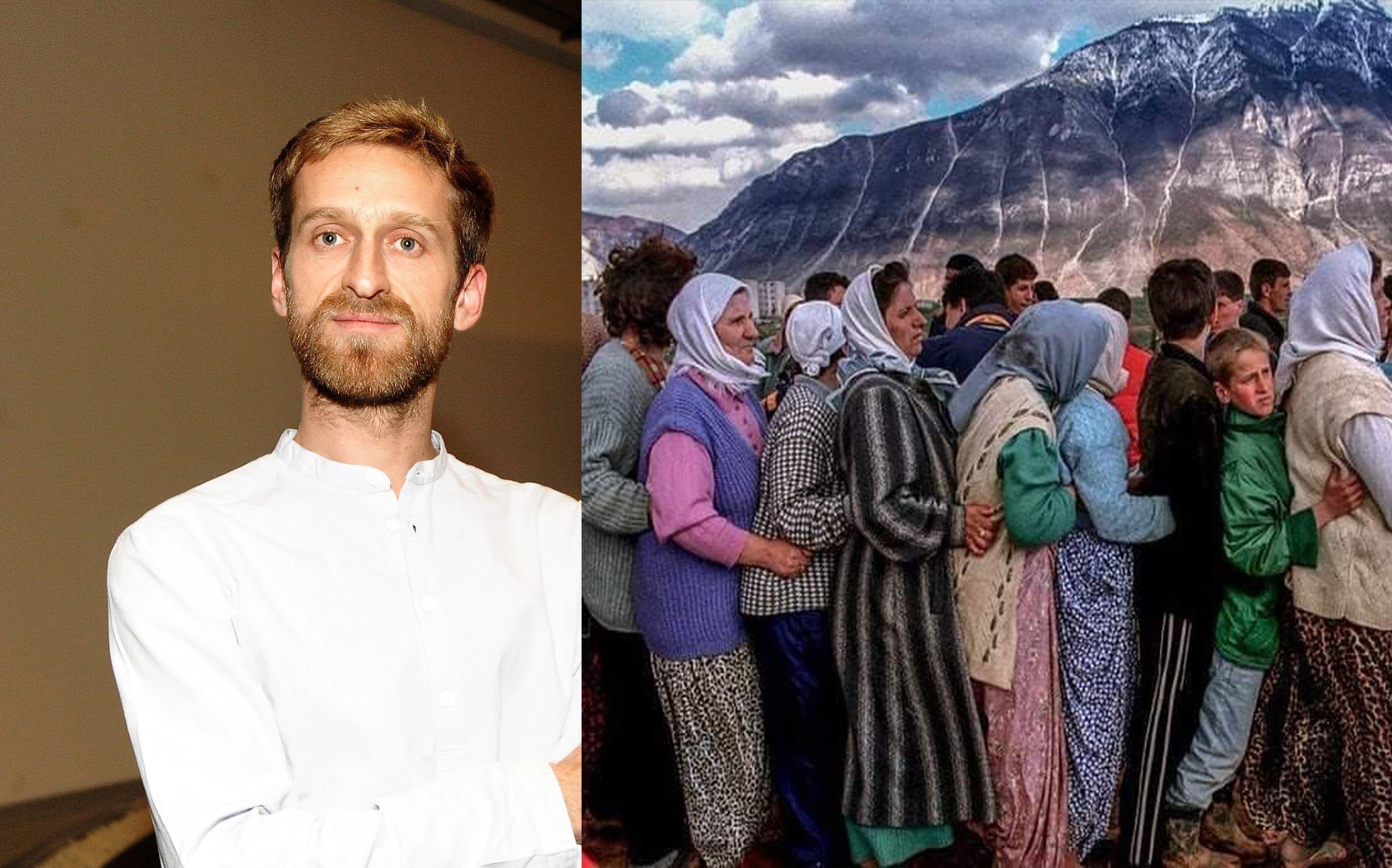 “Kjo mbulesë kuqeverdhë ishte mbi trupin e një foshnje tremuajshe që u vra në fshatin Obri, shumë afër vendit ku jetonim. Unë nuk e kam vënë fëmijën në foto, sepse për mua është imazh i një masakre. Nuk doja t’i tregoja viktimat, sepse jemi shumë të bombarduar nga imazhet e luftës. Në fillim na thanë se ushtarët nuk do të lëndonin kurrë fëmijët. Vrasja e këtij fëmije dhe e gjithë familjes së tij ishte momenti kur fillova të jetoj me frikën e përditshme”.