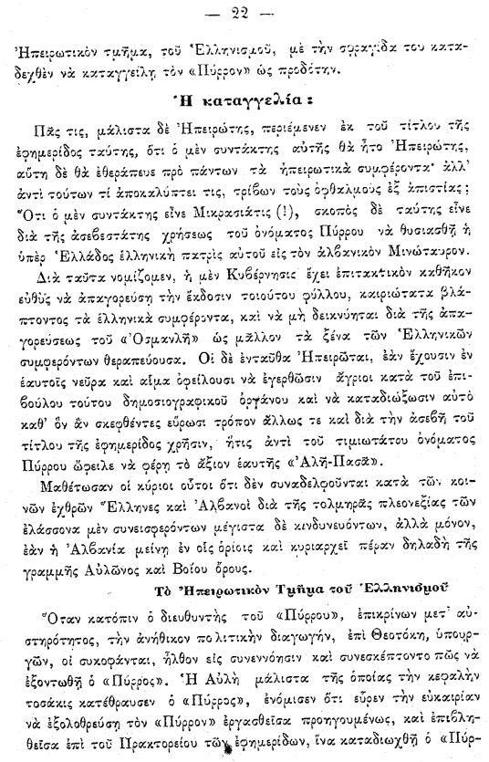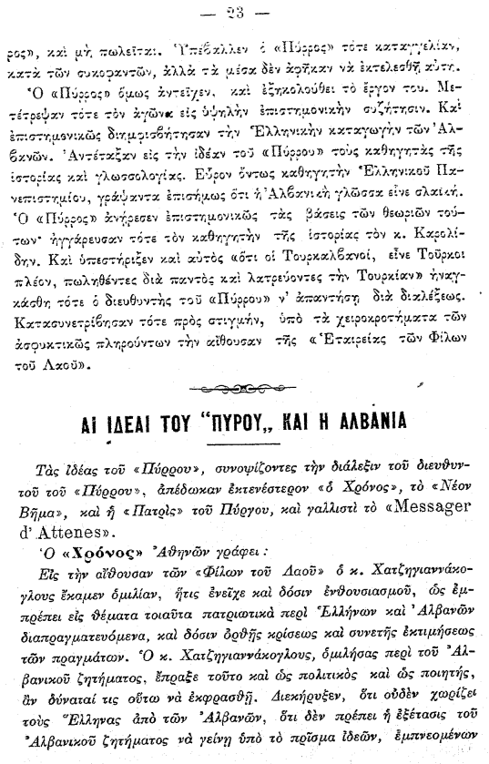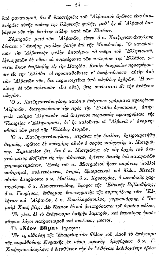 Një nga pikat më interesante të këtij studimi është referenca ndaj autorit grek Nikolaos Lorentis. Gjeografia e tij, e botuar në vitin 1838, shërben si një dëshmi ironike kundër vetë narrativave shoviniste që do të pasonin më vonë. Lorentis, pavarësisht animit të tij të pritshëm, nuk mund të injoronte realitetin në terren: Epiri, apo siç e quanin shumë gjeografë europianë të kohës, “Shqipëria e Poshtme”, ishte e banuar masivisht nga shqiptarët.