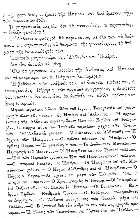 Një pjesë e rëndësishme e materialit merret me ndarjen administrative dhe fisnore. Epiri cilësohet si sinonim i “Shqipërisë së Poshtme” ose “Shqipërisë së Jugut”. Pas kohës së Ali Pashë Tepelenës, ky rajon formonte dy sanxhakë të mëhenj: Janinën dhe Delvinën. Është e rëndësishme të theksohet se për shumicën e gjeografëve europianë të asaj kohe, i gjithë ky territor quhej thjesht SHQIPËRI.