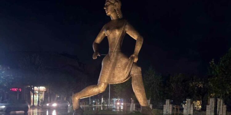 Tekstura krijon reflekse, thellohet me ndriçime dhe i jep figurës prezencë gjatë natës dhe ditës, duke e bërë atë të transformohet vizualisht sipas kushteve atmosferike dhe dritës. Ndriçimi i vendosur poshtë siluetës thekson konturet dhe krijon kontrast dramatik me errësirën e ambientit, hijet e gjeneruara rrisin perceptimin e volumit dhe bëjnë që figura të sjellë “rrëfenja” të ndryshme kur shikohet nga kënde të ndryshme. Kjo vendosje dritë-hije e bën veprën jo vetëm objekt estetik, por edhe element performativ, ajo ndryshon me kalimin e ditës dhe me praninë e kalimtarëve. Në nivel ikonografik, vrapi shfaqet si metaforë e përparimit historik, dëshirës për liri, energjisë rinore dhe kërkimit të identitetit qytetar. Si figurë femërore në hapësirë publike, ajo provokon reflektim mbi rolin e grave në jetën urbane dhe në historinë lokale, feminiteti i paraqitur si akt lëvizjeje e forcon idenë e grave si subjekt aktiv dhe jo vetëm si objekt memorial.