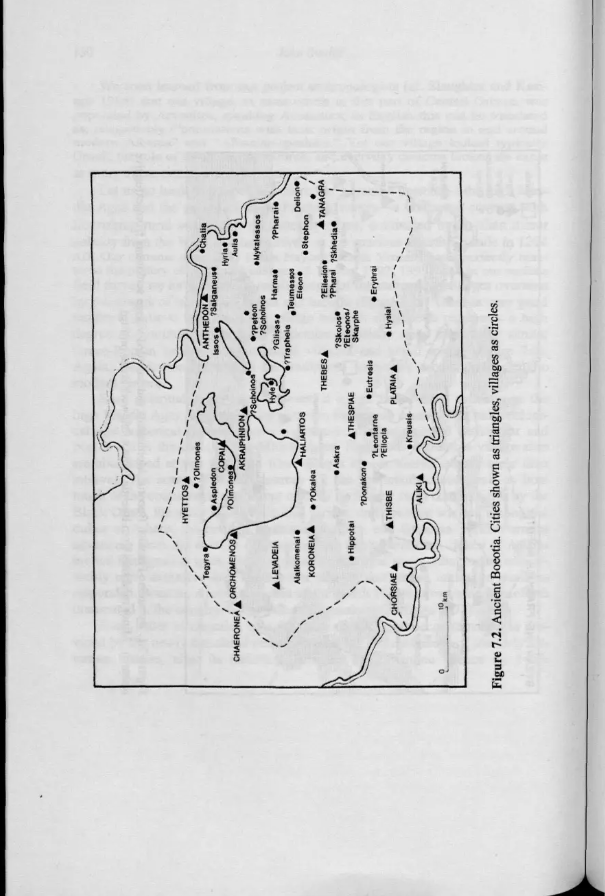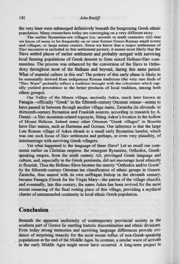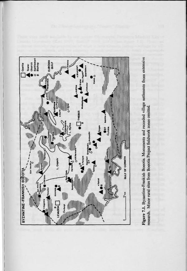 Sipas hulumtimeve të Bintliff, modeli tradicional i “vazhdimësisë së pandërprerë greke” pësoi një goditje shkencore kur u analizuan të dhënat arkeologjike të fundit të Mesjetës. Gjatë shekullit XIV, peizazhi byzantin i Boeotisë pothuajse u fshi nga harta. Shkaqet ishin apokaliptike: “Vdekja e Zezë” (murtaja), bastisjet e piratëve turq dhe luftërat e vazhdueshme midis feudalëve frankë e katalanas.