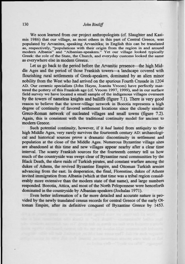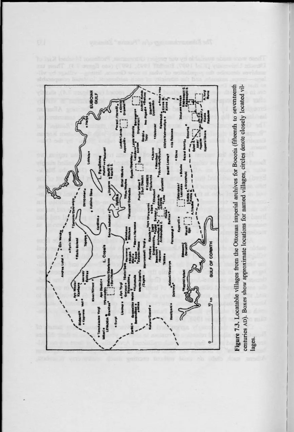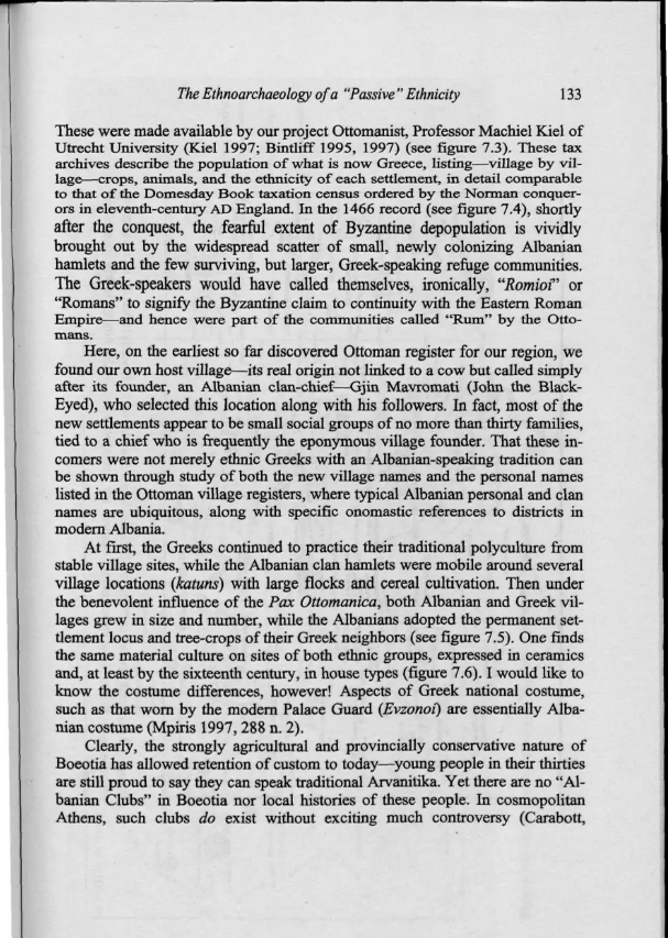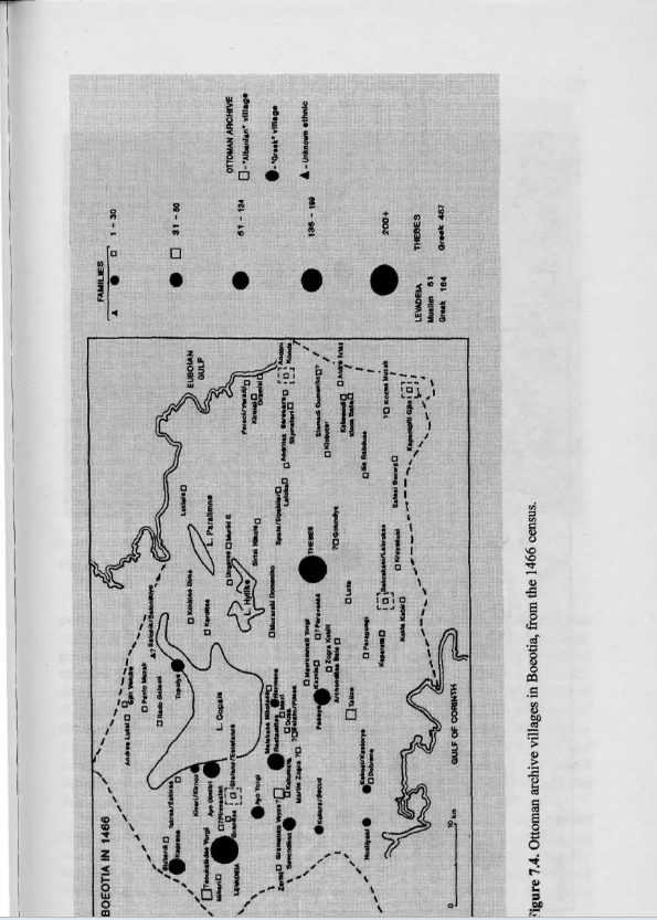 Bintliff mbështetet fort në punën e osmanologut Machiel Kiel, i cili analizoi regjistrat tatimorë të vitit 1466, pak pas pushtimit osman. Këto dokumente (të ngjashme me Domesday Book të Anglisë) përshkruajnë me saktësi etnologjine e çdo vendbanimi.