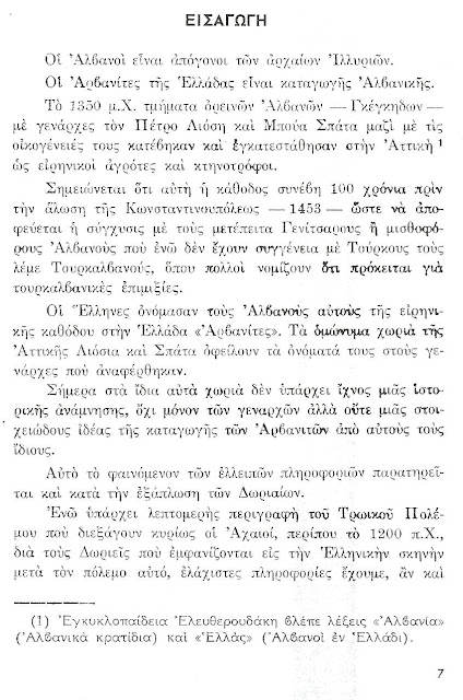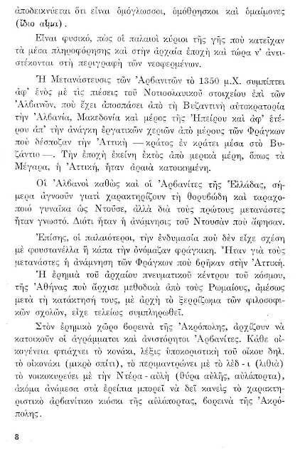 Ky detaj është kyç për qasjen e tij akademike: ai kërkon të pastrojë figurën e Arvanitit nga paragjykimet e shekujve të fundit, duke i paraqitur ata si pasardhës të drejtpërdrejtë të fiseve malore të Ilirisë (Gegëve), të cilët u thirrën në Atikë për shkak të nevojës për popullim, ne zona te shpopulluara, por edhe per krahë pune dhe presionit sllav në veri.