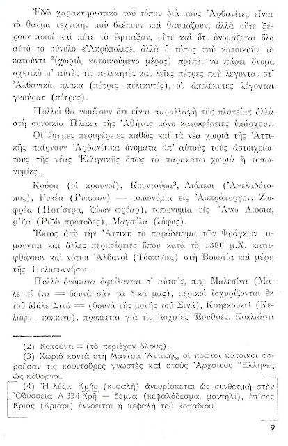 Një nga pjesët më interesante të studimit është analiza e toponimeve në zonën e Atikës dhe rrethinat e Athinës. Rodi argumenton se emrat që ne sot i konsiderojmë si pjesë organike të Greqisë, kanë rrënjë të thella arvanite-shqipe: