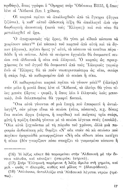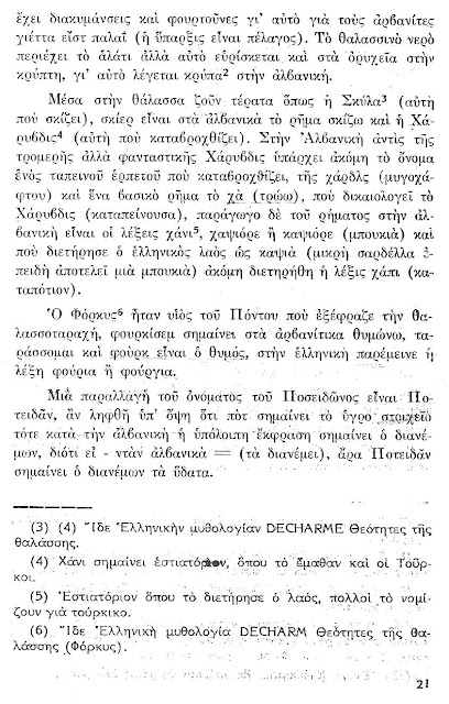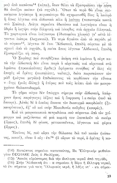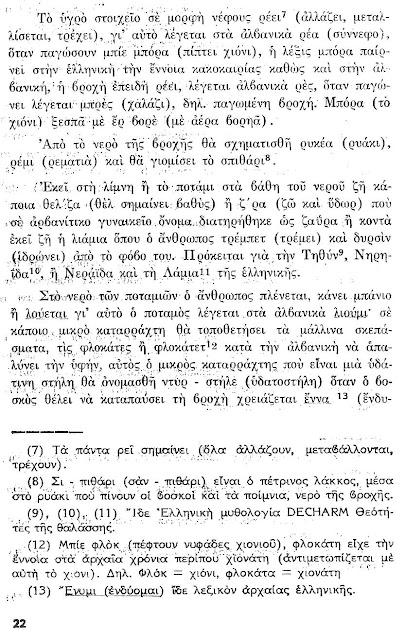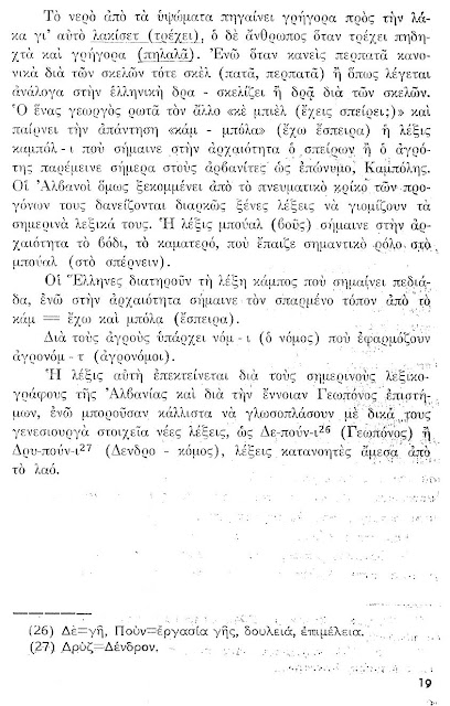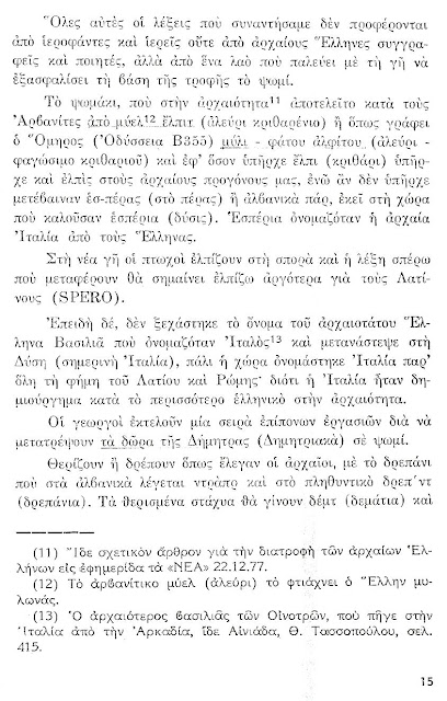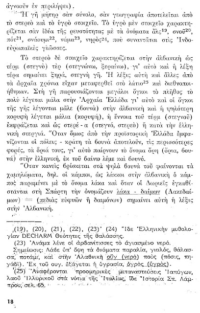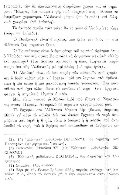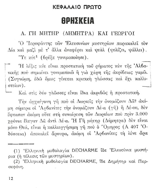 Gjithashtu, ai krahason emrin e perëndeshës Dhimintra (Demeter) me termin dorik “Da” dhe atë arvanitas “Dhe-a” (toka), duke argumentuar se Arvanitët ruajtën formën më arkaike të emërtimit të tokës-mëmë.