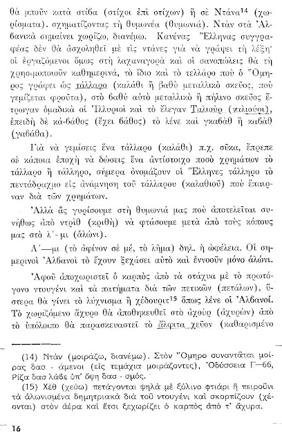 • Plaka: Autori shpjegon se lagjja e famshme e Athinës e merr emrin nga fjala shqipe “plaka” (gurë të lëmuar e të sheshtë), duke kundërshtuar teoritë se ky është një emër modern.