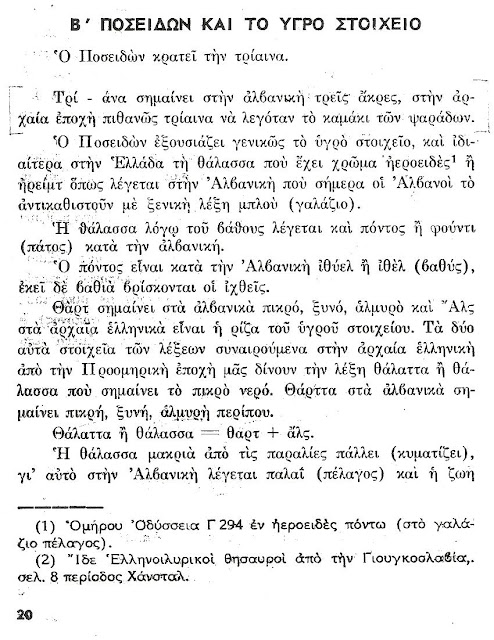 • Poseidon: “Posh-e-dhon” (Posh-e-dhe). Sipas tij, ky emër përshkruan forcën që ndodhet “poshtë dheut”. Duke qenë se Poseidoni njihej edhe si “Lëkundësi i Tokës” (perëndia e tërmeteve), ky emërtim arvanit përshkruan saktësisht pozicionin dhe funksionin e tij.