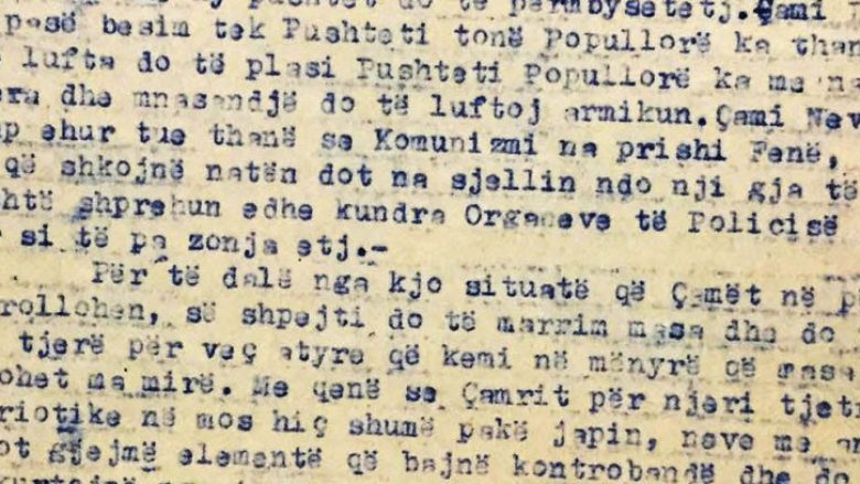 “Elementi çam këtë muaj është munduar që nëpër çamër të tjerë ta paraqesë situatën ndërkombëtare shumë kritike. Po ashtu edhe për ndërrimin e pushtetit tonë, duke mos pas besim te ai ose veten për veten e tyre.