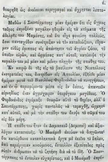 Kjo anekdotë, e përfshirë në botimet greke, tregon se për akademikët dhe autorët grekë të shekullit të 19-të, Skënderbeu nuk ishte thjesht një figurë historike e ftohtë, por një ikonë e pathyeshmërisë ballkanike, identiteti i të cilit ishte i rrënjosur fort dhe padiskutueshëm në Shqipëri.
