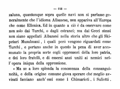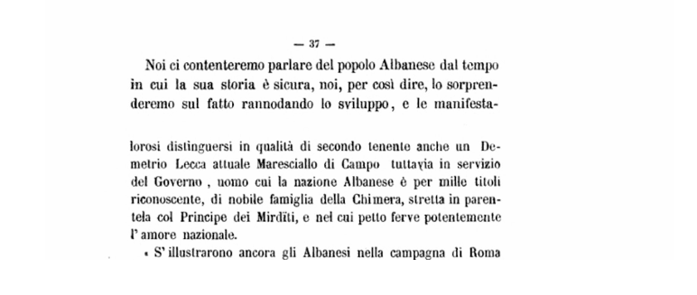 Ky shkrim bazohet në faqet 37, 38, 39, 141, 142,143 dhe 144 të veprës L’Albania nga Pietro Chiara – 1869