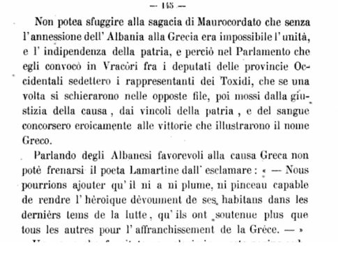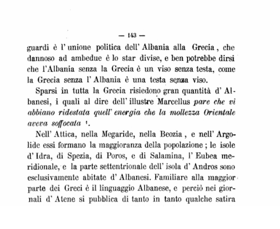 Një nga pikat më interesante të faqeve 142 dhe 143 është dëshmia mbi shtrirjen gjeografike të elementit shqiptar. Chiara, duke cituar studimet e Marcellus, thekson se shqiptarët nuk ishin vetëm banorë të maleve të Epirit, por zotërues të tokave më vitale të asaj që sot njihet si Hellas (Greqi).