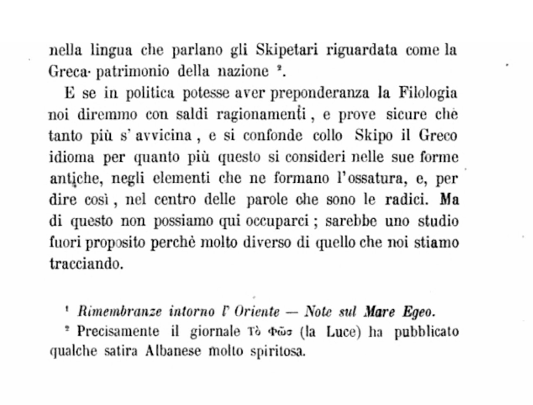 - Chiara shënon me admirim se në këto zona, gjuha shqipe ishte aq e përhapur, saqë edhe në gazetat e Athinës botoheshin satira në këtë gjuhë, të cilat konsideroheshin pjesë e pandarë e trashëgimisë kombëtare.