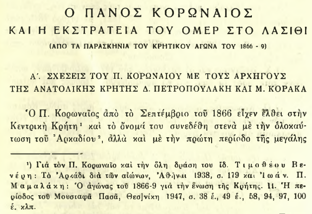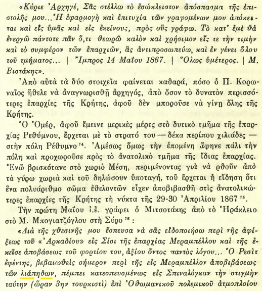 Në verën e vitit 1866, ndërsa flaka e kryengritjes kishte përfshirë Lasithin, një korpus vullnetarësh rebelë, të përbërë nga “Liapides” (lebër) që vinin nga Morea dhe Greqia Qendrore, zbarkuan në Mirabello. Ky operacion ushtarak kishte një qëllim të qartë strategjik: të zmbrapsnin fushatën e egër të Omer Pashës, i cili synonte të shtypte me zjarr e hekur rezistencën kretase në lartësitë e Lasithit.
