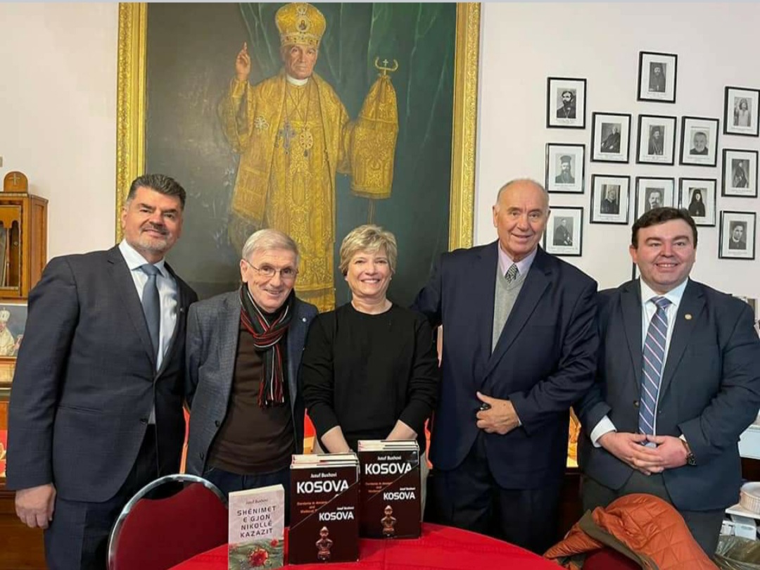 “Me miqët e mi të nderuar, Ramiz Tafilaj, Jusuf Buxhovi, e Milaim Abdullahu, sot ishim për vizitë në Kishën dhe Bibliotekën Memoriale të kolosit të kombit, shqiptarit që ndihmoi në bërjen e njëmend të Shqipërisë, Harvardianit që iluminoi botën për kombin tonë, dhe patëm nderin e jashtëzakonshëm të bisedojmë e prezantojmë librin “Kosova” të historianit Buxhovi, të botuar në anglishte nga Jalifat Publishing e Ramiz Tafilajt në Houston, përkrahur nga Santefarm e Milaim Abdullahut.