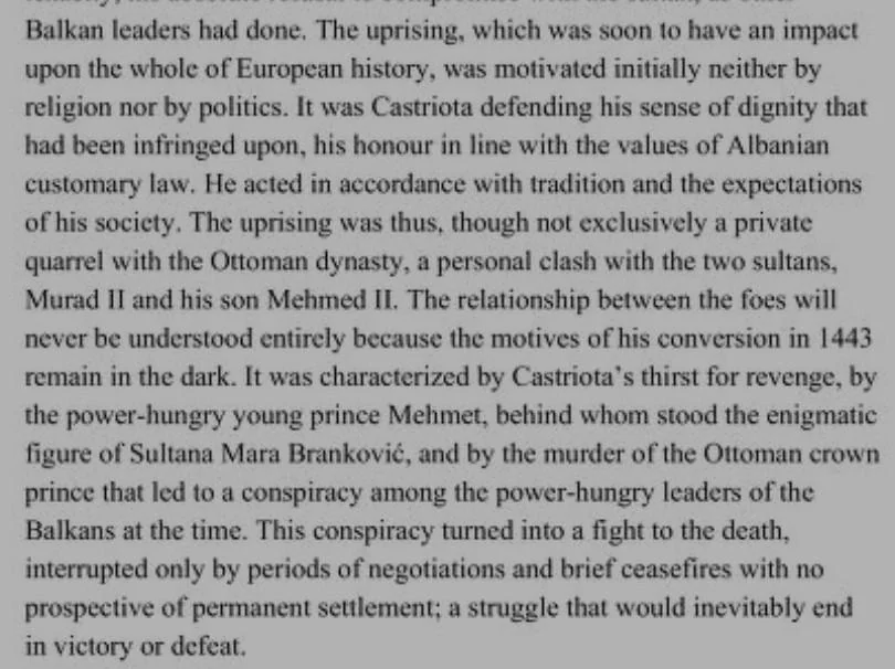 Ashtu siç e përmbyll Brackob: “Lufta e Skënderbeut nuk ishte vetëm për mbijetesë, por për dinjitetin e një populli që refuzoi të nënshtrohej.”