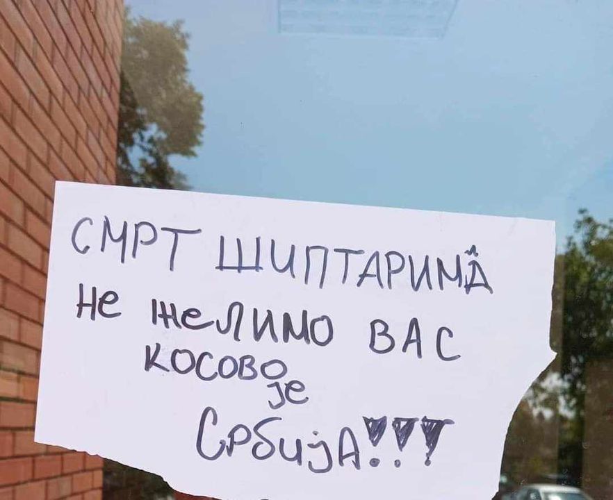 Mbrenda një jave jan shkruar pankarta me mbishkrimin ,,Vdekje shqiptarëve” dhe ,,Vdekje shqiptarëve, nuk ju duam, Kosova është Serbi”.