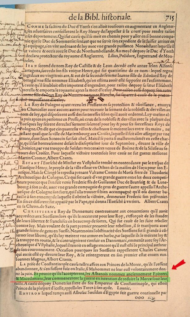 Në faqen 715 të vëllimit të dytë (siç shihet në dokumentin e sekuestruar), Vignier shkruan një fjali që sot do të trondiste shumë katedra ballkanike: