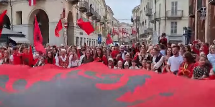 Rrugët e Astit në Itali u veshën kuqezi teksa qindra shqiptarë për të tretin vit me radhë organizuan paradën me këngë dhe valle popullore e me kostume nga të gjitha zonat e Shqipërisë me titullin kuptimplotë “Rrënjët e zemrës”.