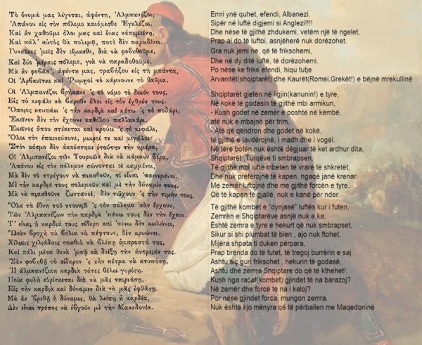 Për ata që ende jetojnë nën iluzionin se Suliotët ishin diçka tjetër përveçse shqiptarë, mjafton t’i referohen këngës greke të vitit 1807, shkruar nga Ioannis Ksouris. Ksouris, i cili luftoi krah tyre, i identifikon ata qartësisht. Suliotët nuk ishin “grekë” në kuptimin modern; ata ishin një bashkësi luftarake shqipfolëse, kodi i të cilëve ishte Kanuni dhe nderi i tyre ishte Burrëria. Kënga thekson zemrën e hekurt të shqiptarëve që nuk zbrapset as para “shiut të plumbave”.