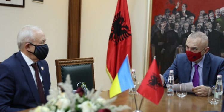 Presidenti Ilir Meta ka zhvilluar një takim me Ambasadorin e Ukrainës në Tiranë, Volodymyr Shkurov. Ashtu siç e paralajmëroi një natë më parë, Meta priti sot në Presidencë ambasadorin Shkurov, një ditë pasi Rusia lëshoi një ultimatum ndaj Shqipërisë e vendeve të tjera anëtare të NATO-s. Krah fotove me ambasadorin, Meta shkruan se ka konfirmuar zyrtarisht se Shqipëria, edhe si vend anëtar i NATO-s dhe anëtar jo i përhershëm i Këshillit të Sigurimit të Kombeve të Bashkuara, është në krah të Ukrainës përballë kërcënimeve të Rusisë.