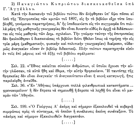 Ky artikull bazohet në kërkimet e Christina Koulouri mbi “Historinë dhe Gjeografinë në shkollat greke (1834-1914)” dhe dokumente arkivore të Ministrisë së Arsimit Grek.