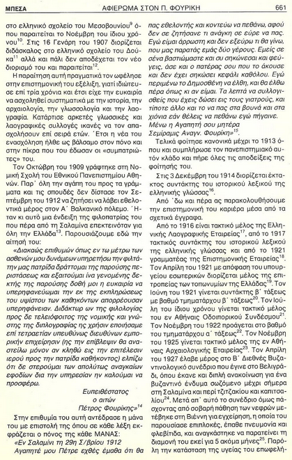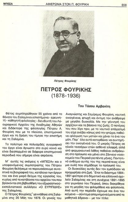 Petro Furiqi – Petros Fourikis (1878–1936) është dijetari që lidhi historinë e shqiptarëve dhe grekëve përmes gjuhës dhe trimërisë.