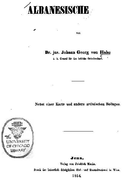 Dëshmia më peshëvjetër vjen nga albanologu i shquar Johann Georg von Hahn (shih fig. poshtë). Në veprën e tij monumentale “Albanesische Studien” (1854), Hahn shkruan shprehimisht: