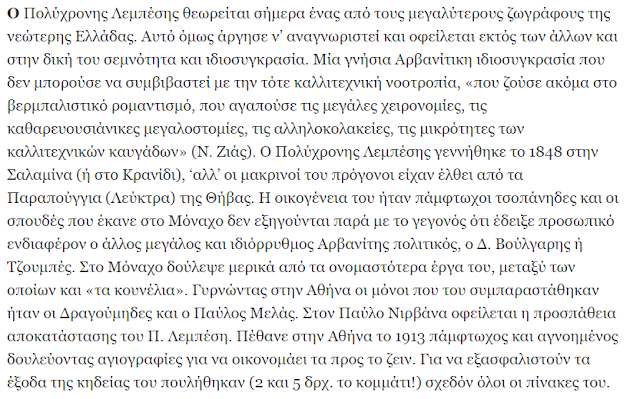 Në historinë e artit modern grek, emri i Polikron Lembesit (1848–1913) qëndron si një monolit heshtjeje dhe integriteti. Ndonëse sot konsiderohet si një nga piktorët më të mëdhenj atje, njohja e tij erdhi me vonesë — një vonesë që nuk ishte rastësi, por pasojë e drejtpërdrejtë e asaj që kritika e kohës (siç shihet në shënimet e N. Zias) e cilësonte si “një idiosinkrazi e pastër arbërore”. Kjo natyrë, e mbyllur dhe modeste, nuk mund të pajtohej me mentalitetin artistik të Athinës së fund-shekullit XIX, e cila lëngonte nën një “romantizëm verbalist”, lavdi boshe dhe lajka të ndërsjella.