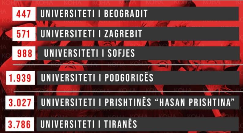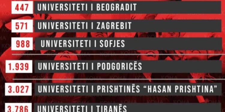 Publikon klasifikimin botëror të cilësisë së universiteteve, Meta: Shqipëria renditet e fundit në rajon