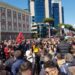 Më herët në Korçë u ngritën dhe studentët e universitetit Fan S. Noli të cilët gjithashtu marshuan në rrugë me pankarta nëpër duar e duke u bërë thirrje institucioneve.