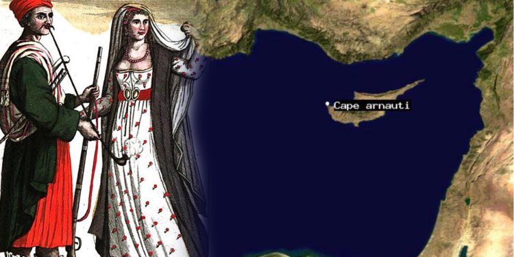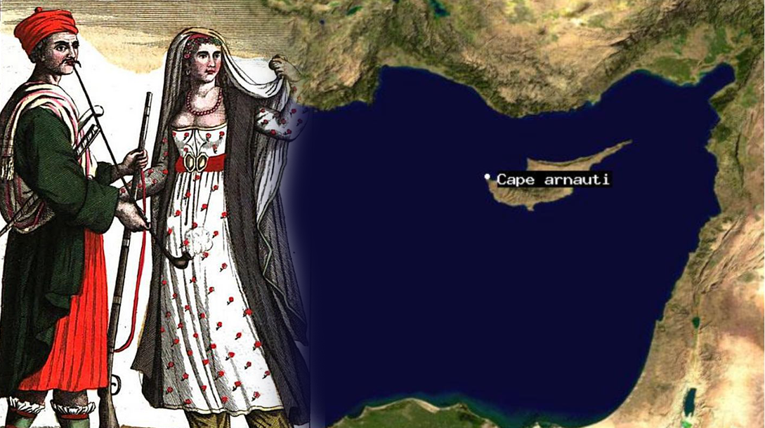 Në librin “Kronikat e Qipros” në vëllimin e parë në faqen 16, Macheras shkruan: “Shqiptarët u vendosën në ishull rreth shekullit të IV-ërt, duke formuar një kastë më vehte që ende ekziston”.