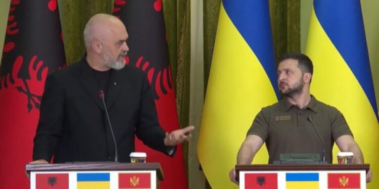 Kiev- Një nga momentet me interes në konferencën e përbashkët për shtyp mes Zelenskyt, Ramës dhe Abazaviç, ishte përmendja e Kosovës. Rama i tha presidentit ukarainas se nuk e kishin njohur Kosovën, megjithatë ajo u rreshtua kundër Rusisë.