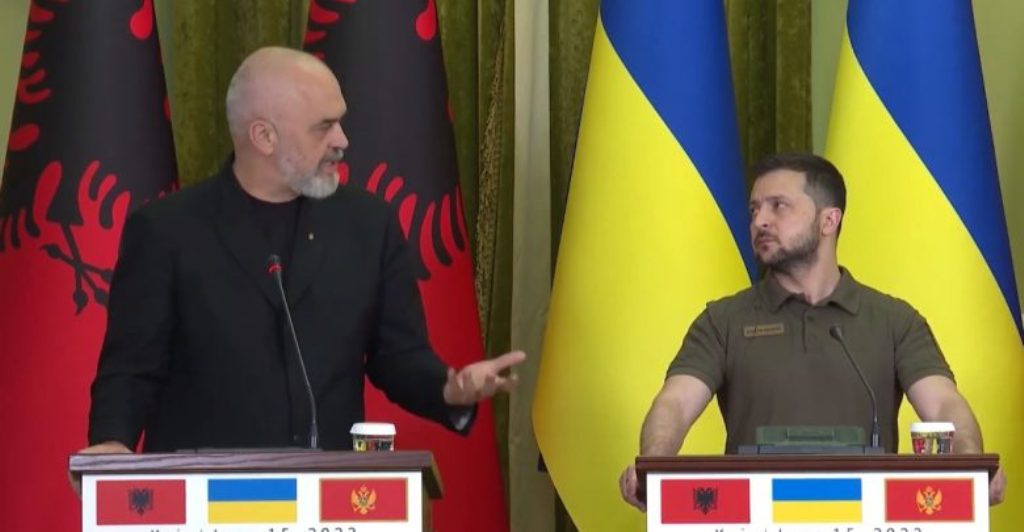 Edi Rama: Ballkani Perëndimor ka 5 vende në Kombet e Bashkuara, të gjitha ato janë rreshtuar krah Ukrainës, pavarësisht historisë së ndryshme, pavarësisht kontekstit të ndryshëm, pavarësisht marrëdhënieve të ndryshme me Rusinë, pasi është krejt ndryshe se si e shohim botën përkundrejt Rusisë në qoftë se merrni për shembull Shqipërinë dhe Serbinë, apo Malin e Zi dhe Bosnjën, por të gjitha janë në mbështetje. Por ka edhe një vend të gjashtë, që Ukraina ende nuk e ka njohur, Kosova, e cila pavarësisht kësaj po bën saktësisht të njëjtën gjë që po bëjnë të gjithë, me sanksionet dhe mbështetjen e plotë. Do të thotë që këtu jemi në një linjë të mirëpërkufizuar të asaj çfarë jemi dhe përfaqësojmë. Besoj fort që është gjëja e duhur për t’u bërë. Ukrainës duhet t’i jepet statusi kandidat. Populli duhet ta dijë sot që e ardhmja është në BE. Kjo është e vetmja gjë që nënkupton statusi kandidat