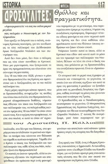 Nga mjegulla e historisë ballkanike, shpesh herë të manipuluar ose të heshtur, ngrihen ende hijet e atyre që me gjakun e tyre vizatuan kufijtë e shteteve të sotme. Në Kretë, në kështjellën e vjetër të Frangokastellos, çdo fundmaji ndodh një fenomen i rrallë optik, një mirazh ku duken ushtarë të armatosur që ecin drejt detit. Vendasit i quajnë “Drosoulites” (Hijet e Vesës). Por ata nuk janë thjesht hije; ata janë jehona e 800 luftëtarëve shqiptarë dhe komandantit të tyre legjendar, Haxhi Dalani, të cilët ranë heroikisht për çlirimin e ishullit.