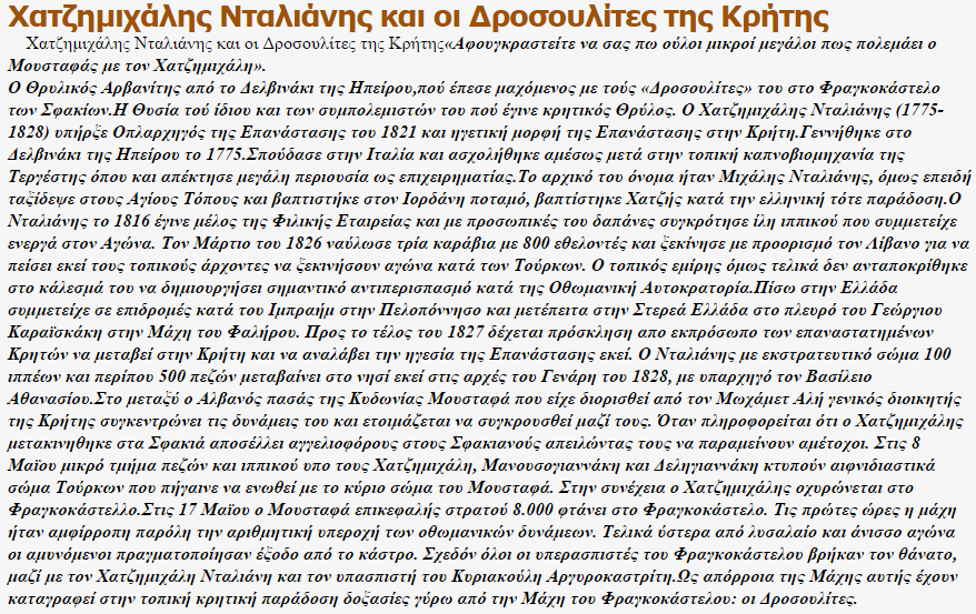 Kur Haxhi Dalani zbarkoi në Kretë në fillim të vitit 1828 me qindra djem të zgjedhur, kryesisht kalorës, përballë tij nuk ishte një “turk” nga Anadolli. Komandanti i trupave osmane ishte Mustafa Pasha, një shqiptar tjetër, patriot dhe bashkëkombës i njohur i Haxhi Dalanit. Historiografia zyrtare i ka ndarë palët me thikën e fesë: