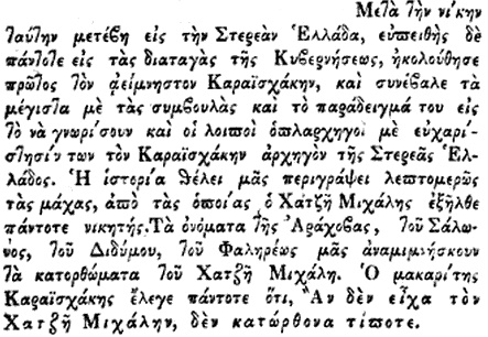 Në maj të vitit 1828, forcat e Mustafa Pashës (rreth 8000 këmbësorë dhe 400 kalorës) u afruan. Vendasit e Kretës (Sfakianët), të cilët nuk e njihnin luftën në fushë të hapur me kalorësi, i kërkuan Haxhi Dalanit të tërhiqej në male. Ai refuzoi preras. Dokumentet e kohës e përshkruajnë këtë si një përplasje të parë të sfakianëve me “kokëfortësinë arvanitase”.