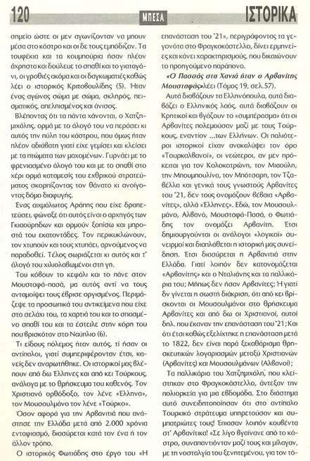 Siç ka theksuar me të drejtë antropologia dhe shkrimtarja e madhe britanike, Edit Durham: “Grekët e fituan pavarësinë e vitit 1829 me ndihmën e shqiptarëve”. Dhe rasti i Kretës është dëshmia më sublime e kësaj të vërtete historike.